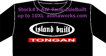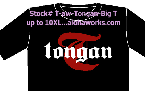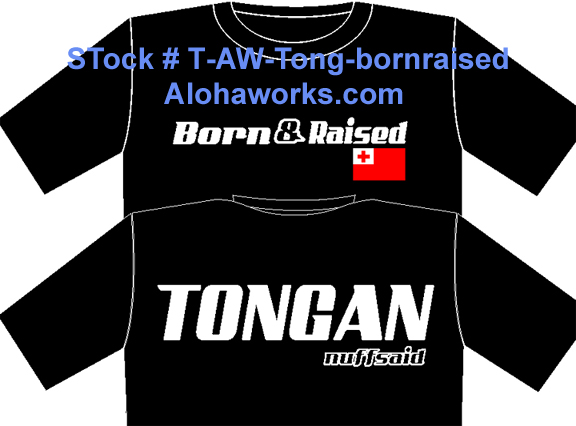 Stock # IVIIVI Malohi Tongan tee comes in dark green, blue, black, and grey up to 2 XL, call to confirm availability of sizes. Stock # T-AW-TongPride2Flag up to 10XL